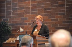 Jane Danielson, delegate from Gloria Dei Lutheran Church in Saint Paul, delivers the Secretary’s Report at the May 1, 2018, Annual Meeting.