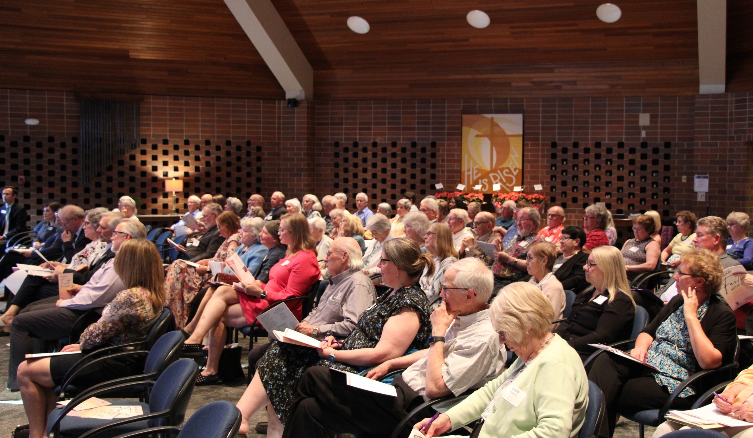 Delegates gather at the 2025 Annual Meeting on May 6 in the Newman-Benson Chapel at Lyngblomsten’s Como Park campus in Saint Paul.